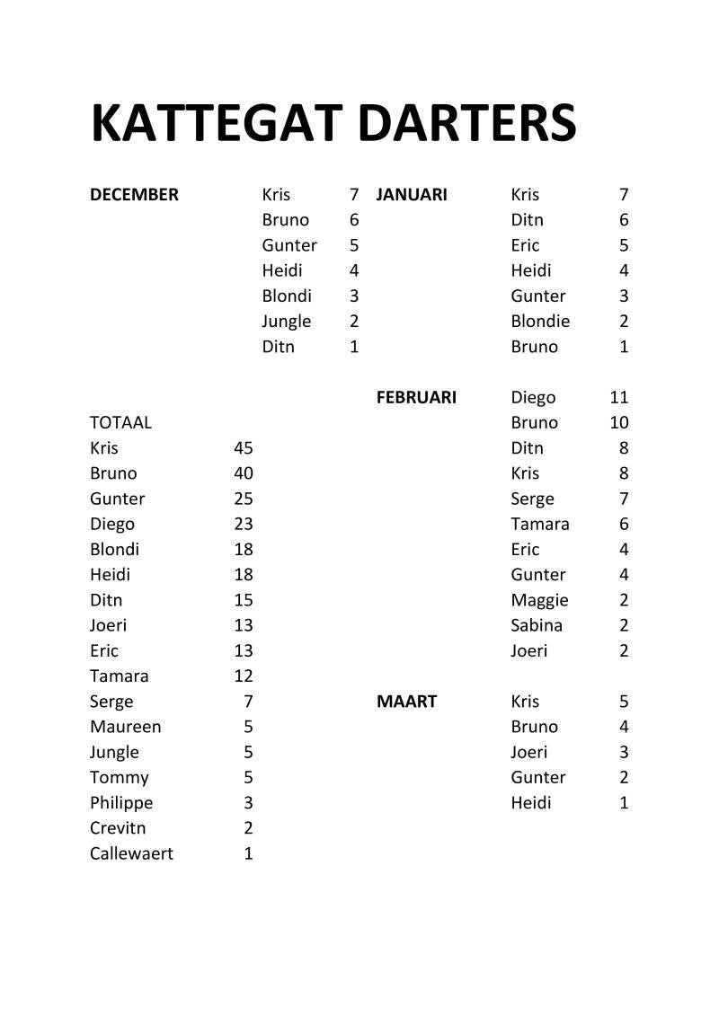 Bij Kattegat.be draait darts om meer dan alleen een spel. Het is een kans om samen te komen, te lachen en te strijden in een sfeer die alleen wij kunnen bieden. Of je nu een beginner bent of een doorgewinterde professional, wees welkom aan ons dartbord!